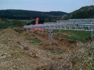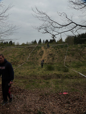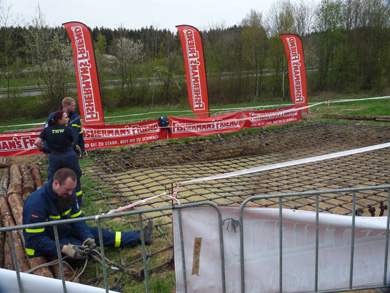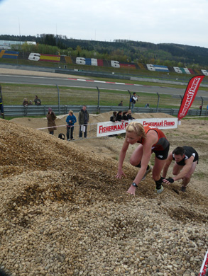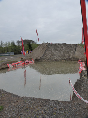 Hier ging es mehrere Hundert Meter auf sandigem Untergrund bergauf, um steile Kurven, wieder bergab und schließlich auf leicht matschigen Untergrund auf die letzte Passage dieses Hindernisses zu: