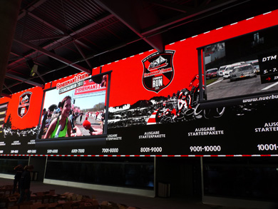 Hier ein kleiner Ausschnitt der imposanten Video-Leinwand an der Startnummern-Ausgabe in der ring°arena.