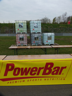 Hier standen doch tatsächlich alkoholfreies Warsteiner, Powerriegel, Kuchen (!!) Iso-Getränke, Tees und Wasser bereit.