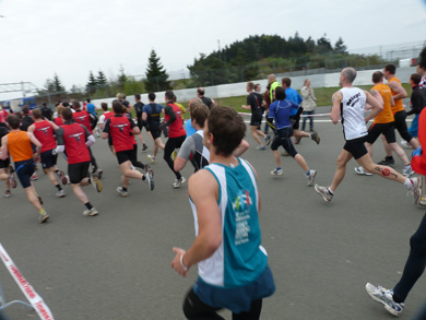 Wenige Minuten vor dem geplanten Start kamen noch immer Läufer an uns vorbei getrottet und reihten sich hinten ein.