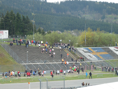 Es folgte ein kurzes Stück Wiese und dann kamen die ersten Treppen, über die wir die eigentliche Rennstrecke für eine ganze Weile verlassen sollten.
