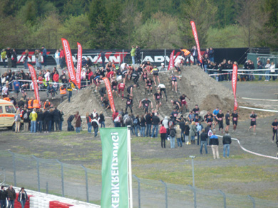 Wieder ging es über den „Kiesimandscharo“, welcher durch die vielen Füße mittlerweile gut einen Meter abgetragen wurde, und zurück auf die Rennstrecke. Endlich wieder „Straßenrennen“, meine Hauptdisziplin.