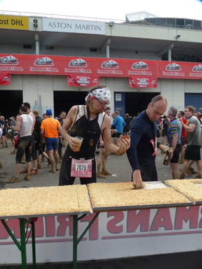 Dummschwitzer-Bruder und ich waren zwar am Ring und ’schnupperten‘ schonmal in die tolle Atmosphäre (und die weniger tollen Indoor Pommes- und Wurststände).