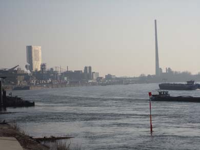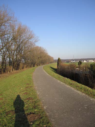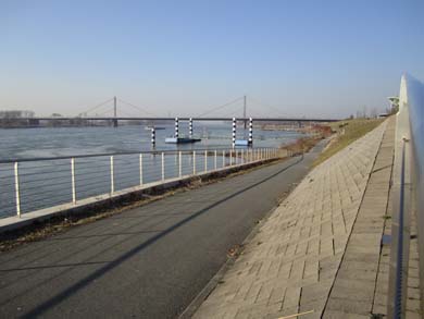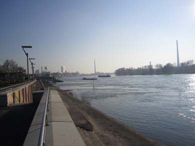 Schnurgerade geht es in einigen hundert Meter Entfernung zum Rheinufer der Wupper entgegen. Natürlich kann man auch direkt am Rheinufer auf einem Weg laufen, jedoch ist der an sonnigen Wochenenden leider seeehr stark frequentiert.