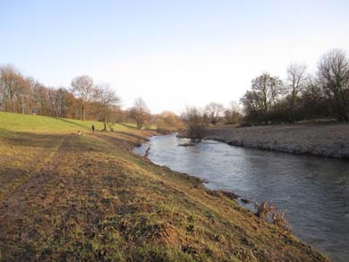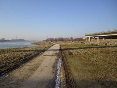 – Größtenteils an oder auf (asphaltierten) Flussdämmen