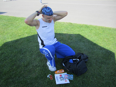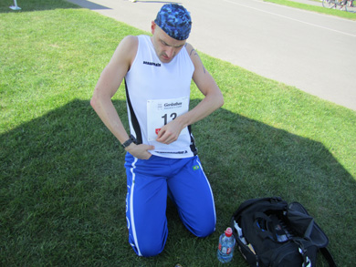 Während ich meine letzten Startvorbereitungen vor dem Warmlaufen traf…