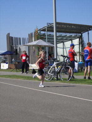 Die Radfahrerin drehte neben mir und begeleitete mich einige Meter, als ich auf den Start/Ziel-Platz einbiege höre ich schräg neben mir ihre Stimme: „Los Leute, Anfeuern, Klatschen!“