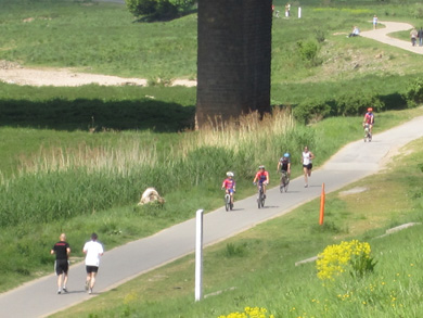 Weiter ging es, wie sollte es anders sein, schnurgerade Flussabwärts an der Wupper entlang. Die Sonne schien mir von vorne ins Gesicht, aber wenigstens befand ich mich wieder auf meiner Trainingsstrecke.