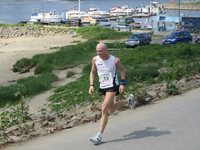 Ich blickte auf meine Uhr und stellte fest, dass ich endlich im glatten 4:00min/km-Tempo angekommen war. Allerdings nicht ganz freiwillig, denn auf den Flussdämmen herrschte fast durchgängig harrscher Gegenwind.