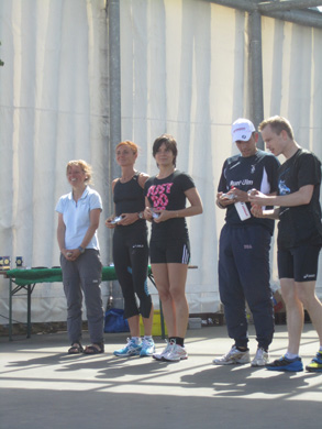 Schnellste Frau wurde Silke Schäpers (1:00:09, mitte) vor Janine Helwig (1:08:33, rechts) und Eve Lichter (1:09:52, links)