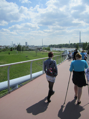 Nach der Brücke blockierte ein Posten den Zugang zum Neulandpark und deutete nach links.