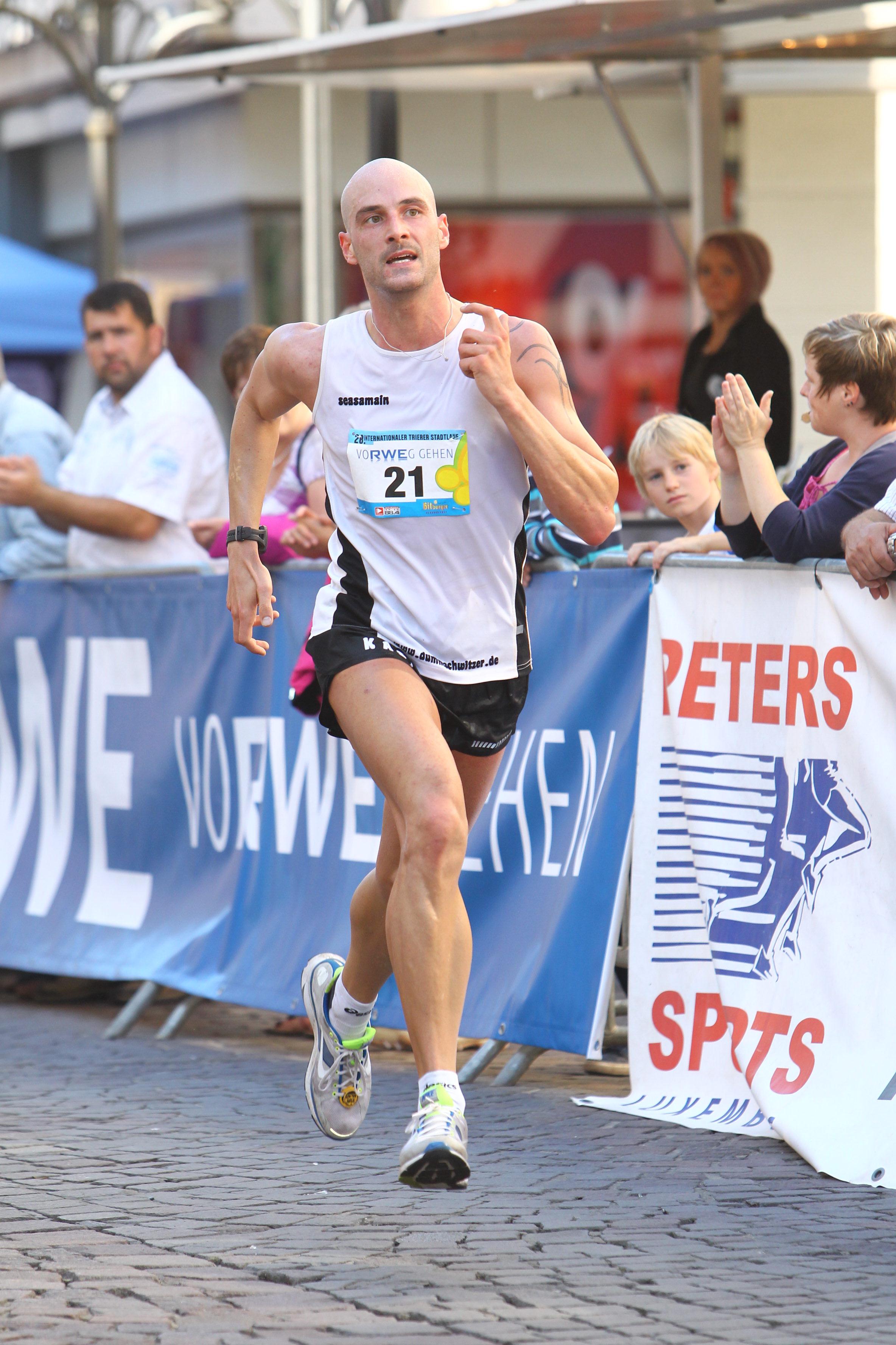 Schräg vor mir erspähte ich ein bekanntes Gesicht: Jener Mitarbeiter der trierer „City Sport“-Filliale, der mir Anfang des Jahres meine Nike Lunar Elite-Rennschuhe empfohlen hat. Wir sprachen kurz miteinander, wünschten uns Glück und schon knallte der Startschuss durch die altehrwürdige Gasse.
