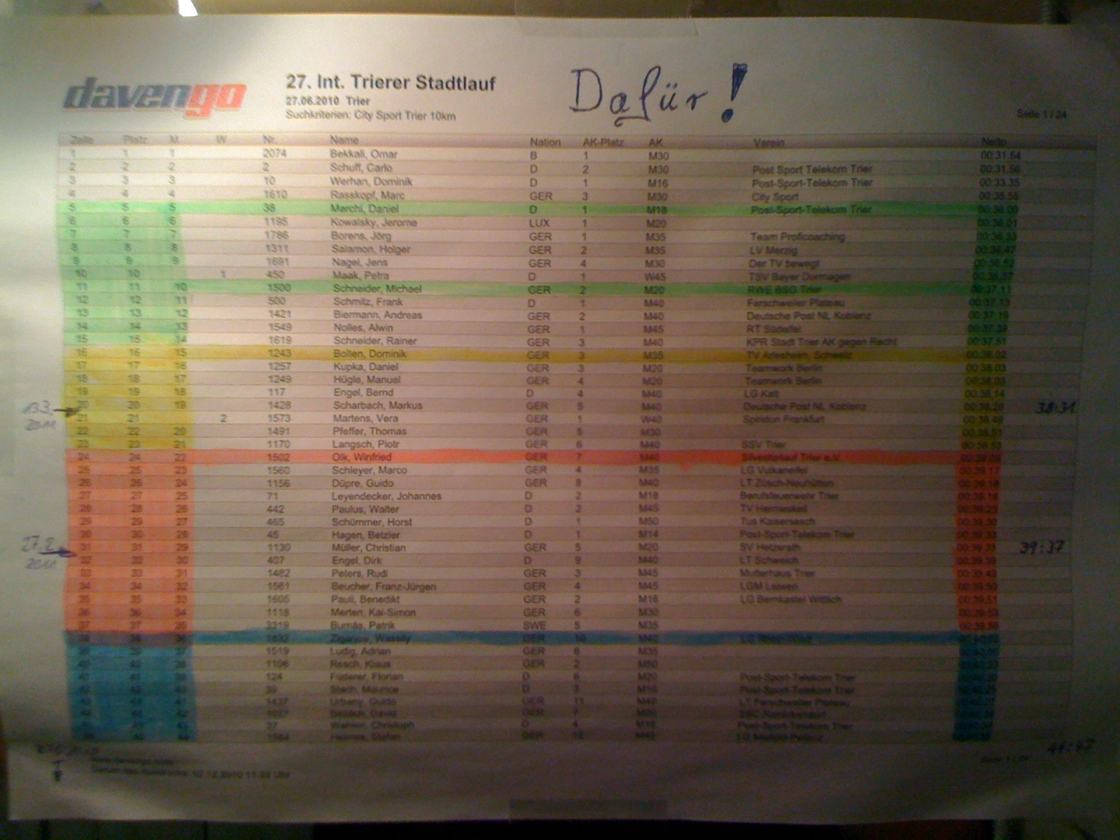 Und nach dem Training gibt es natürlich keinen besseren „Kick“, als die eigene, aktuelle Bestzeit mit den Vorjahres-Ergebnissen des Ziel-Laufes zu vergleichen: