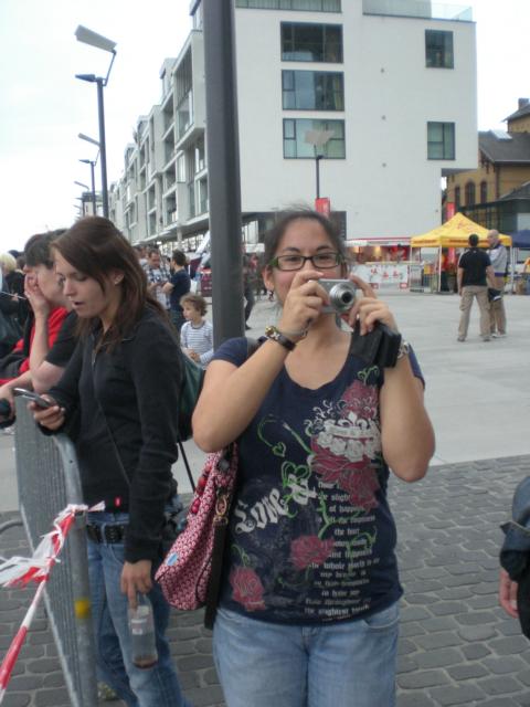Lnks und rechts von uns die imposanten, hohen Hafengebäude, hinter uns ein gigantischer, menschlicher Lindwurm, von vorne der Wind.