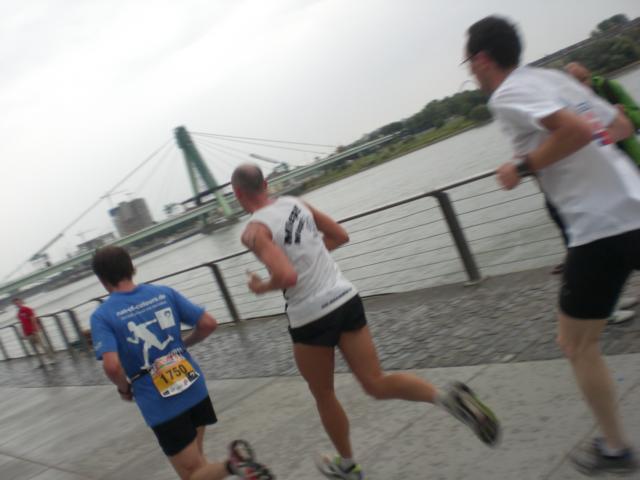Schon bald wechselte der Belag von Kopfsteinpflaster nach Asphalt, der Weg beschieb eine S-Schikane und neben uns breitete sich der Rhein aus. Ich wühlte mich Läufer um Läufer weiter nach vorne, das Führungsfeld noch gut in Sichtweite. Meine Beine waren frisch, der Kopf klar und generell ‚fühlte‘ es sich gut an – noch.