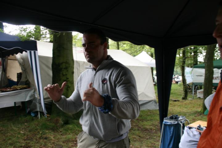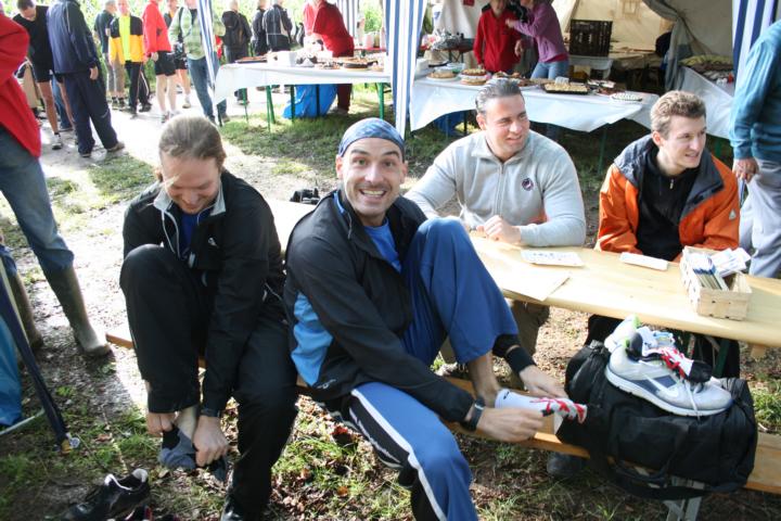 André ist schon parat. Mich verschlägts aufgrund elendig langer Warteschlangen vorm Dixieklo nochmal ins Unterholz.