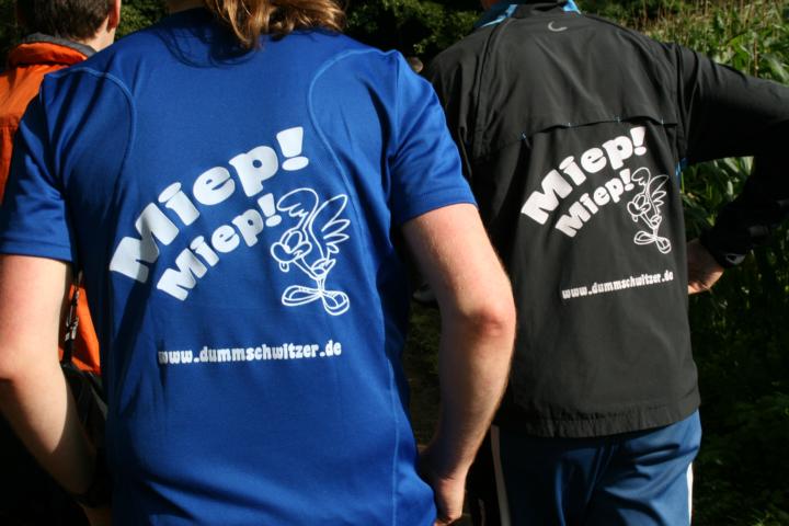 Heute laufen wir beide in Blau / Schwarz mit weißem Aufdruck.